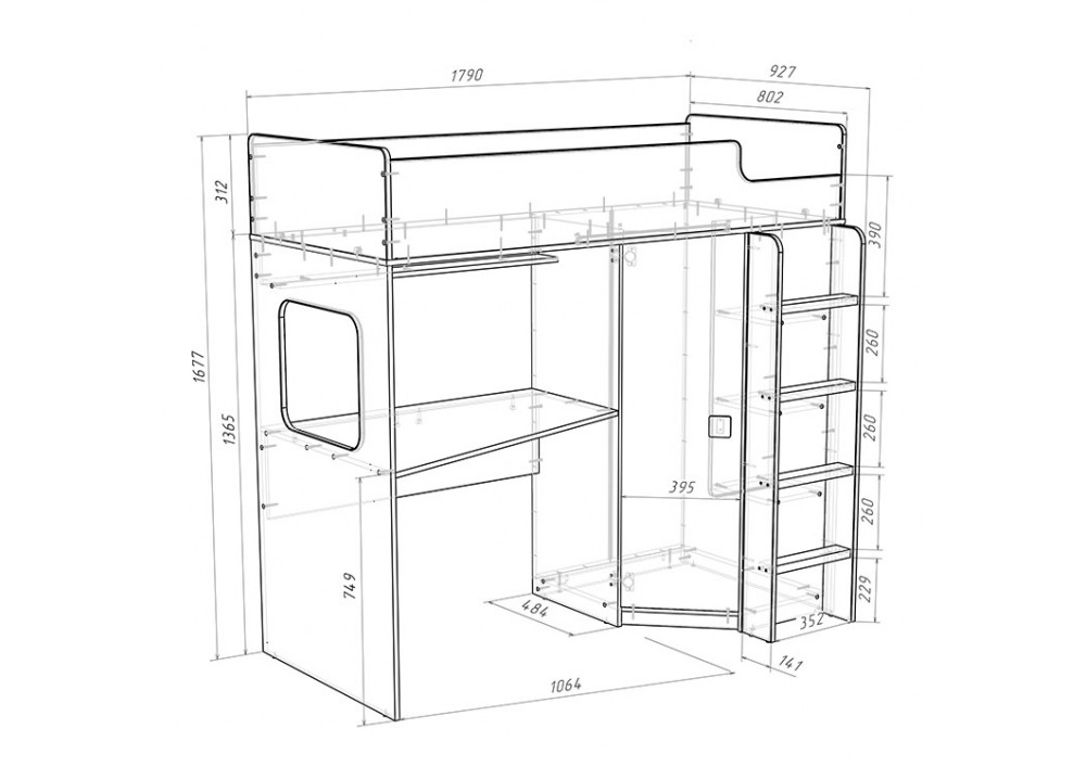 Кровать чердак Легенда B605.41 – великолепный комплект мебели, решение для площади малых габаритов, экономия пространства.