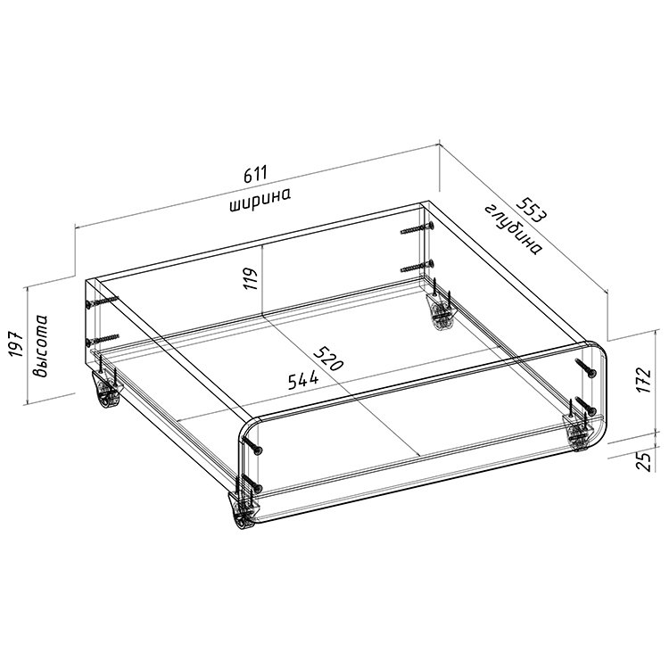 Длина/Ширина/Высота (мм) 611 × 553 × 197